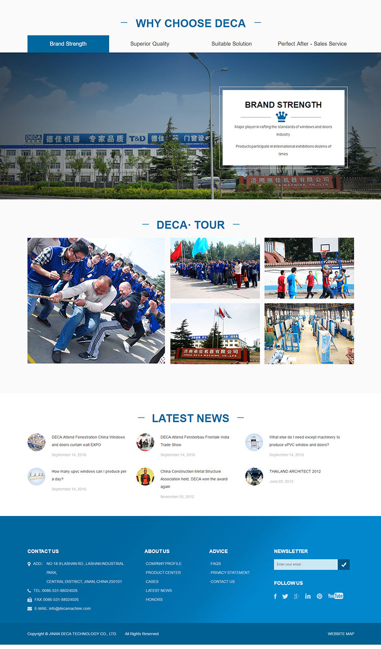 dhering to the consistent concept of " DECA machine, expert quality", JINAN DECA TECHNOLOGY CO., LTD. is committed to developing higher use value for users, providing better use experience of the high-quality door and window fabriation equipment.